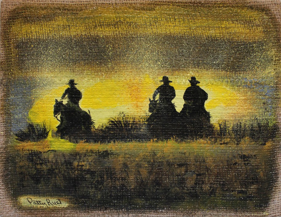 Cowboys Posted by jrust2 on September 22, 2014 Cowboys – 8″x10″ acrylic on burlap, 2014 Like Loading... This is an image for Canvas. Images navigation ← Previous Next →